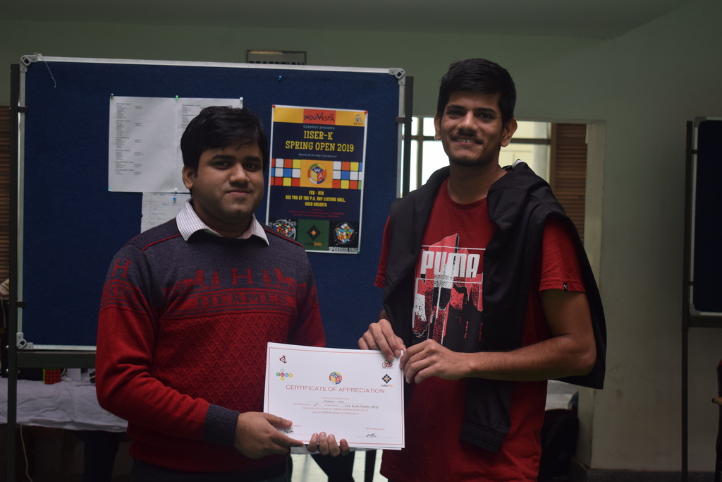 Speedcubing has many benefits ranging from increase in cognitive and spatial reasoning, hand-eye coordination, to algorithmic thinking and a boost in memory. Apart from this, the Rubik’s Club aims to bring opportunities for community membership and leadership to young people at IISER-K through organising competitions and workshops. We believe that experiences at competitions and within our community create growth opportunities for everyone participating.